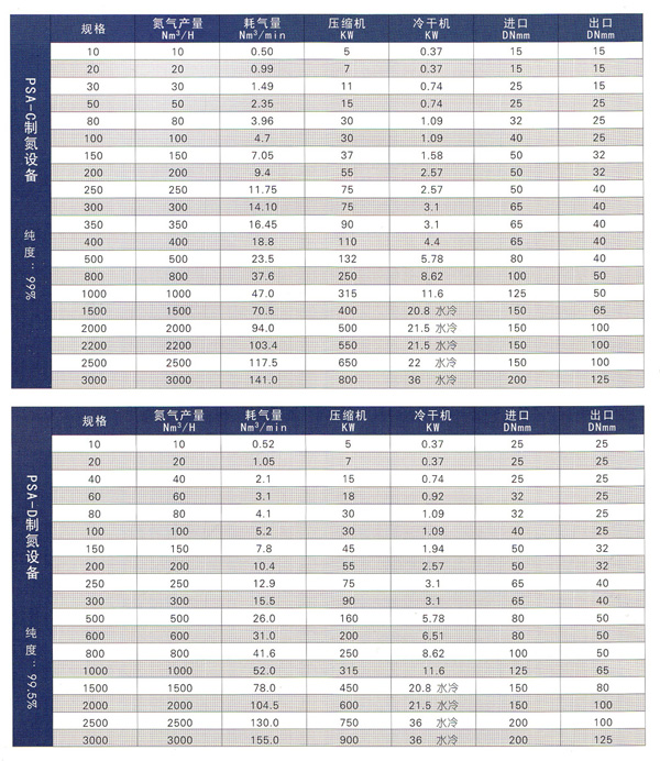 制氮機-變壓吸附制氮設備技術參數(shù)