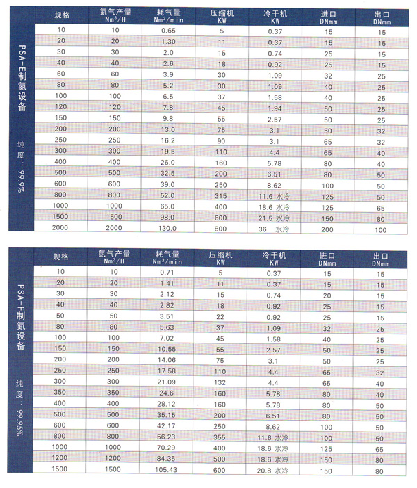 變壓吸附制氮機(制氮設備)技術參數(shù)如下: