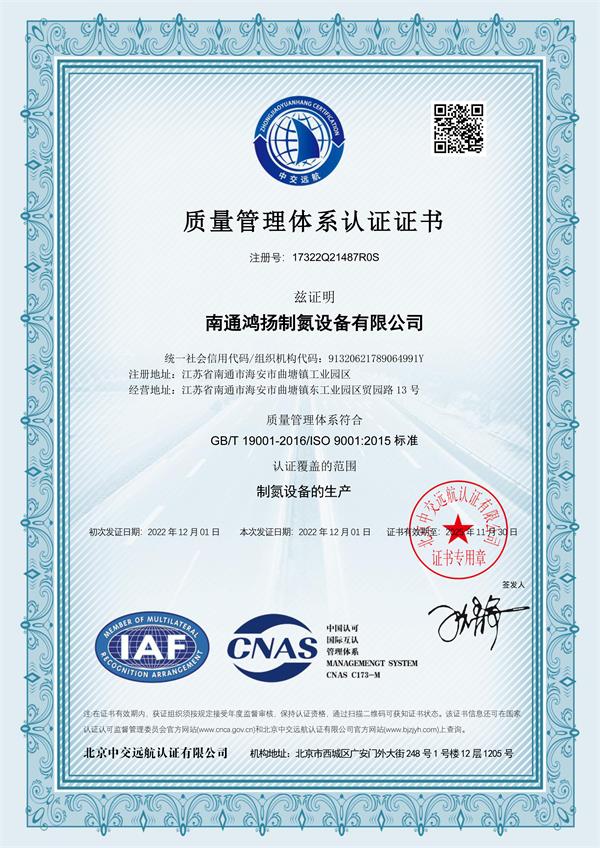 南通鴻揚(yáng)制氮設(shè)備有限公司 >> 質(zhì)量體系